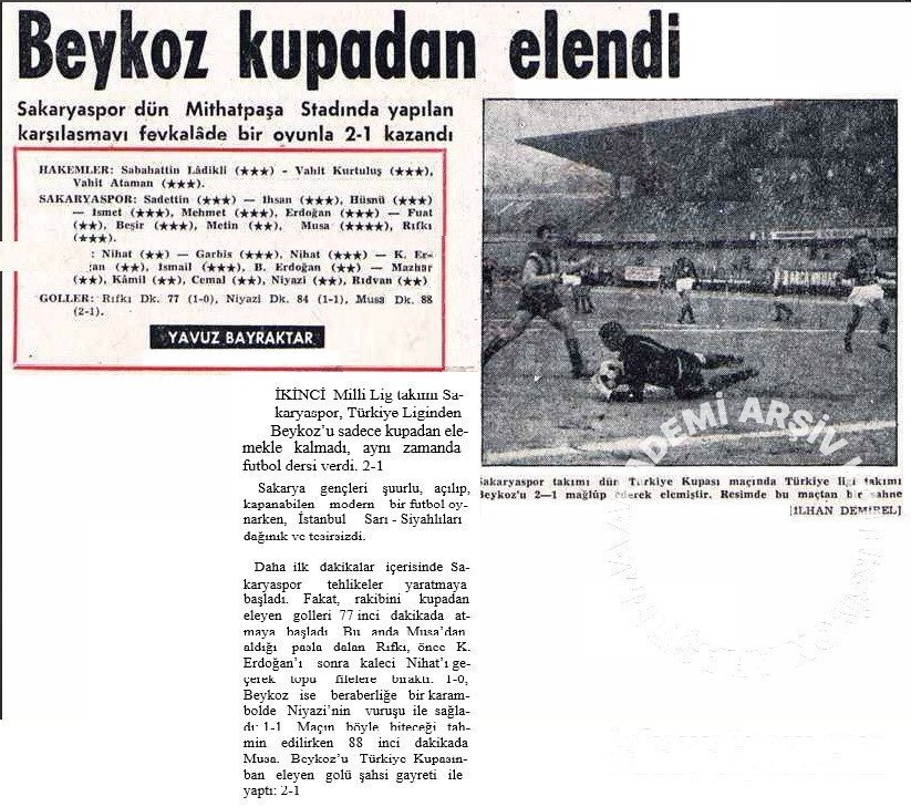 Beykoz ise beraberliğe bir karambolde Niyazi’nin vuruşu ile sağladı: 1-1. Maçın böyle biteceği tahmin edilirken 88 inci dakikada Musa Beykoz’u Türkiye Kupasından eleyen golü şahsi gayreti ile yaptı: 2-1