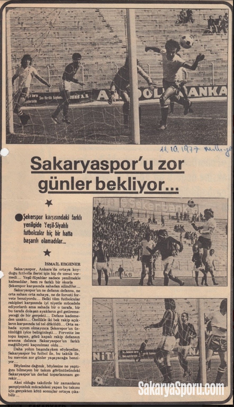 Sakarya por. Ankara'da ortaya koyduğu futbolla ilerisi için hiç de umut vermedi... Yo fil-Siyahlar sadece yenilmekle kalmadılar, hem de farklı bir skorla Şekerspor karşısında sahadan silindiler...