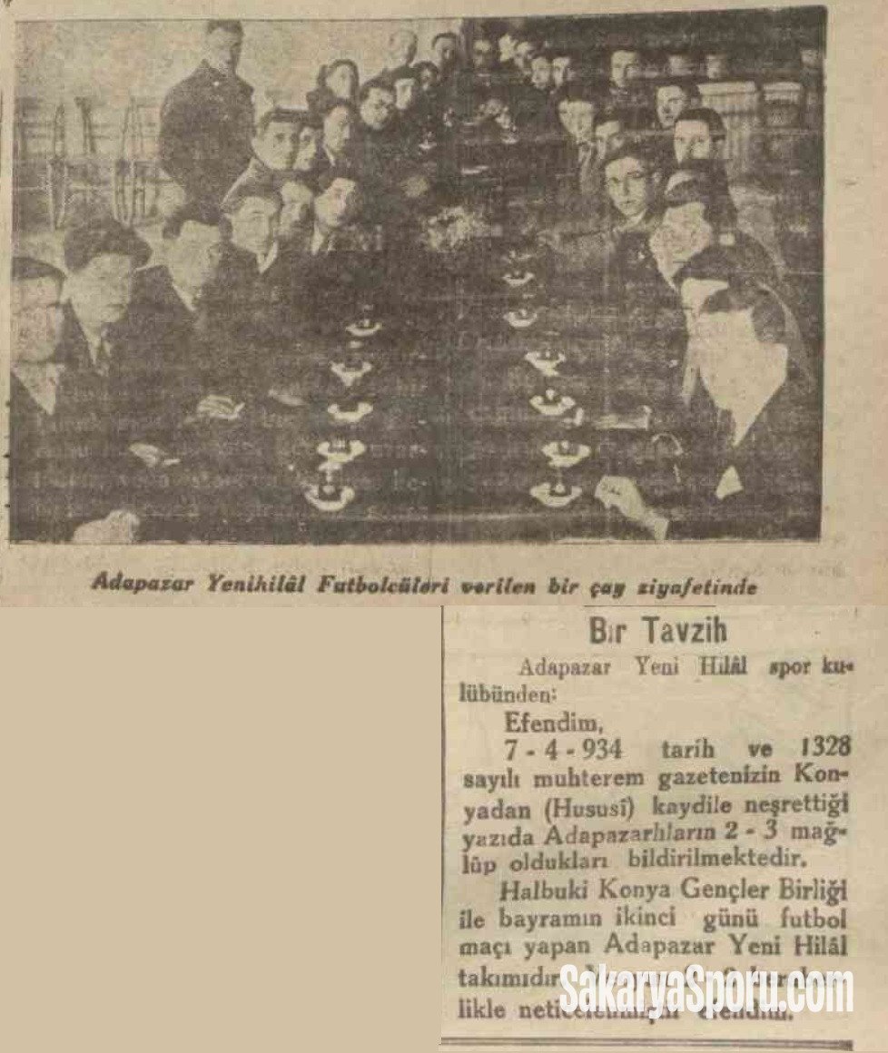17.04.1934 tarih ve 1328 sayılı muhterem gazetenizin Konya’dan (Hususî) kaydı ile neşrettiği yazıda Adapazarlılar’ın 2-3 mağlûp oldukları bildirilmektedir.