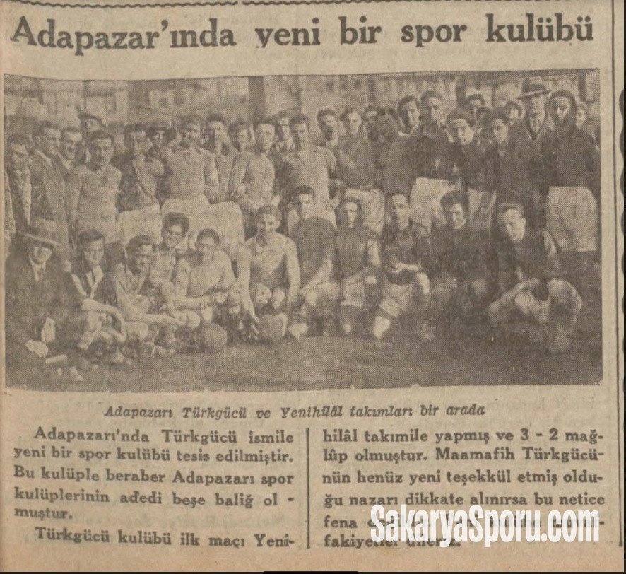 Adapazarı’nda Türkgücü ismi ile yeni bir spor kulübü tesis edilmiştir. Bu kulüple beraber Adapazarı spor kulüplerinin adedi beşe baliğ olmuştuştur.